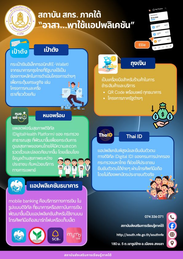 กิจกรรม “สกร.อาสา พาใช้แอปพลิเคชัน” ตามนโยบาย ของ ดร.เกศทิพย์ ศุภวานิช อธิบดีกรมส่งเสริมการเรียนรู้ สำหรับกลุ่มเป้าหมายประชาชนในชุมชน และผู้รับบริการ ในเรื่องการรู้เท่าทันเทคโนโลยี (Digital Literacy)โดยเน้นให้ประชาชนสามารถใช้แอพพลิเคชันที่เกี่ยวข้องกับการดำเนินชีวิตประจำวัน เช่น แอปพลิเคชันเป๋าตัง แอปพลิเคชันถุงเงิน แอปพลิเคชันธนาคารต่าง ๆ หรือแอปพลิเคชันหมอพร้อมเพื่อให้ประชาชนจะได้ดำเนินการได้ โดยสะดวกพร้อมมีความรู้เรื่อง Digital